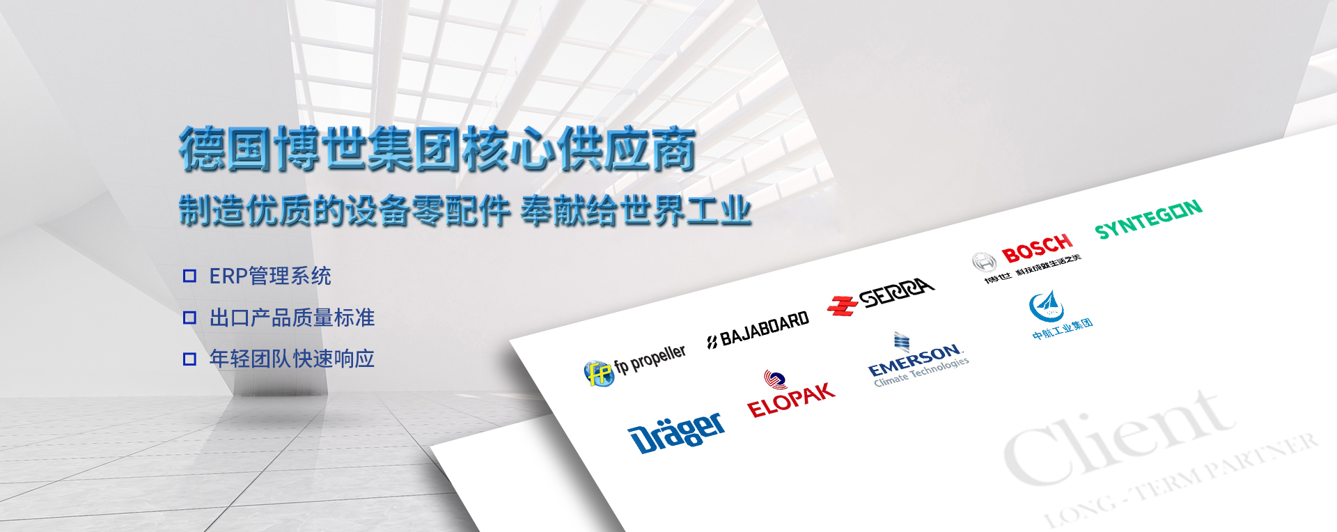 產(chǎn)品主要包括醫(yī)療器械精密配件,包裝機(jī)械配件,汽車精密零部件,民用航空精密配件,高端電動越野滑板車等,公司先后獲得 ISO9001:2008 質(zhì)量體系認(rèn)證以及進(jìn)出口權(quán),具備嚴(yán)格的質(zhì)量管理體系和完善的售后服務(wù)體系。服務(wù)涉及民用航空、能源、通訊、電子、交通、環(huán)保等重要產(chǎn)業(yè)。